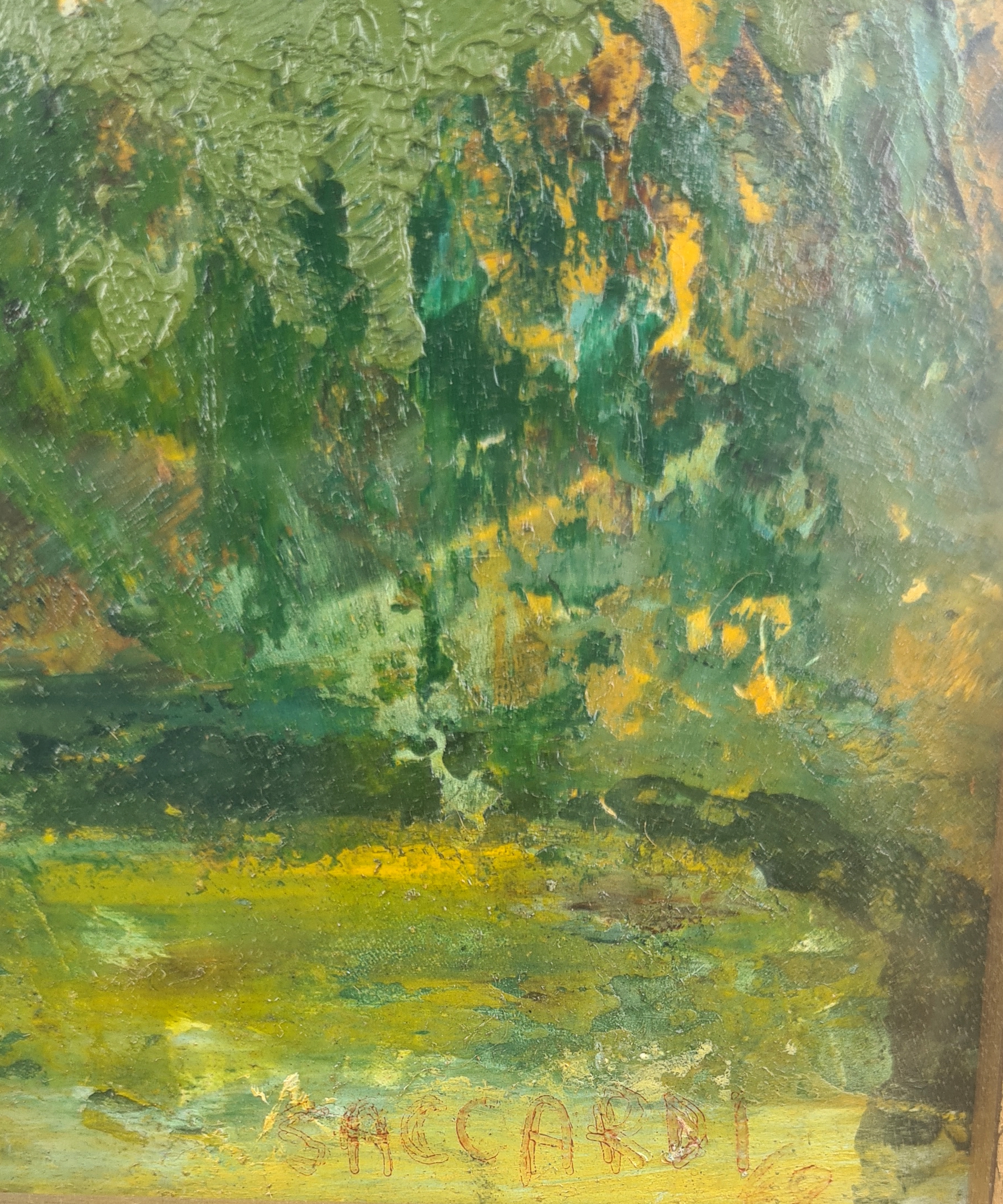 Dipinto di Carlo Saccardi – Scorcio di Campagna – Tela 32 x 26 cm