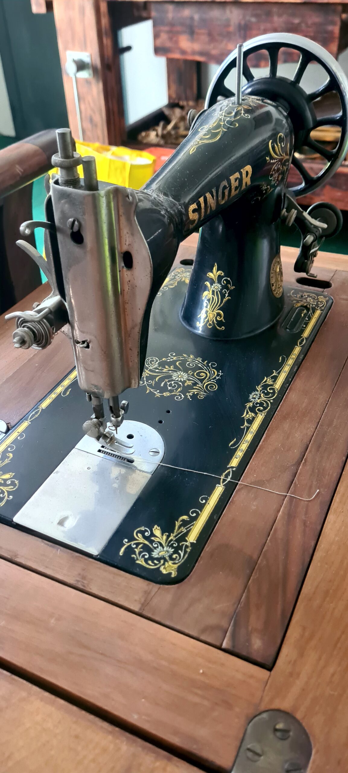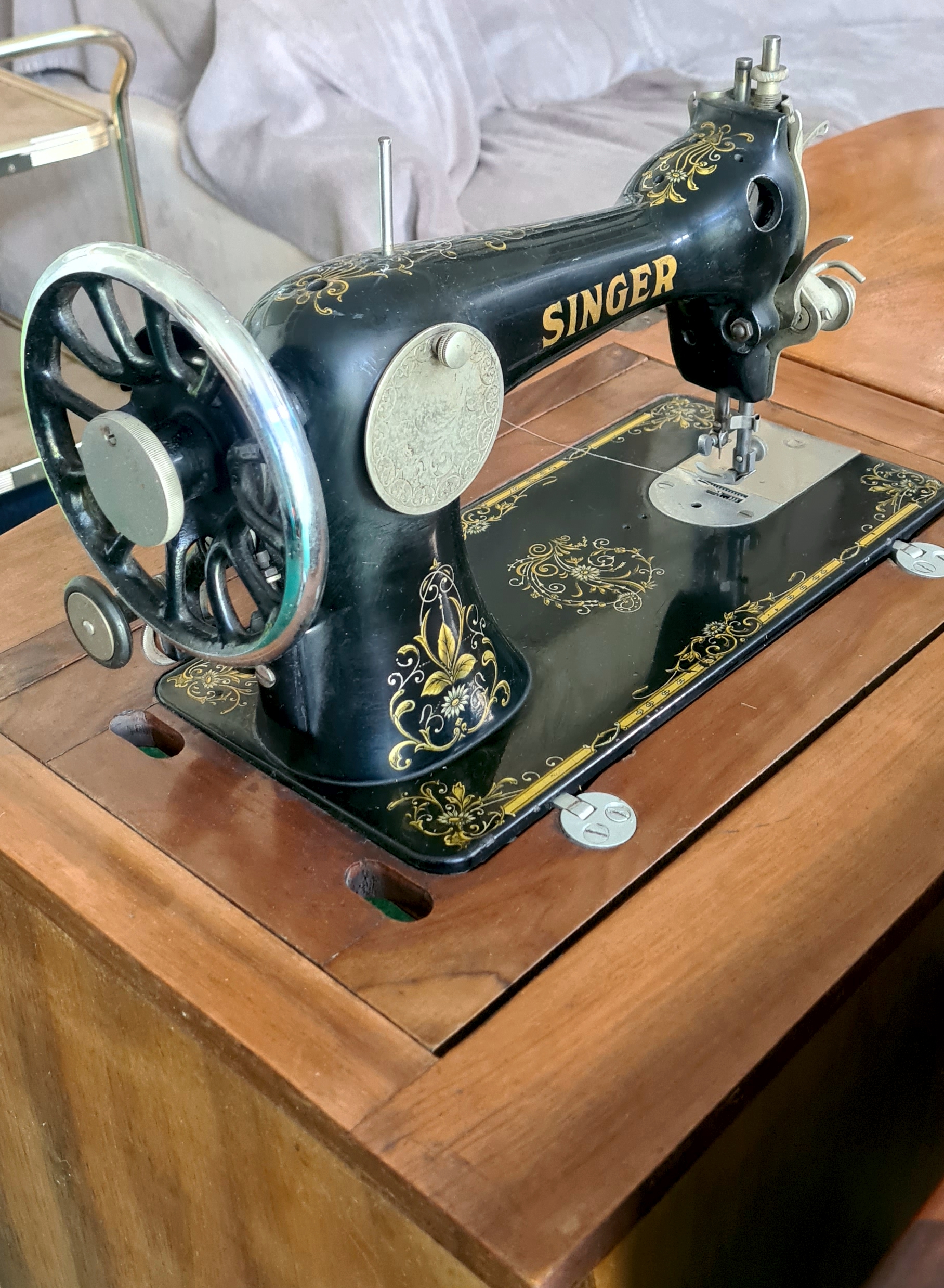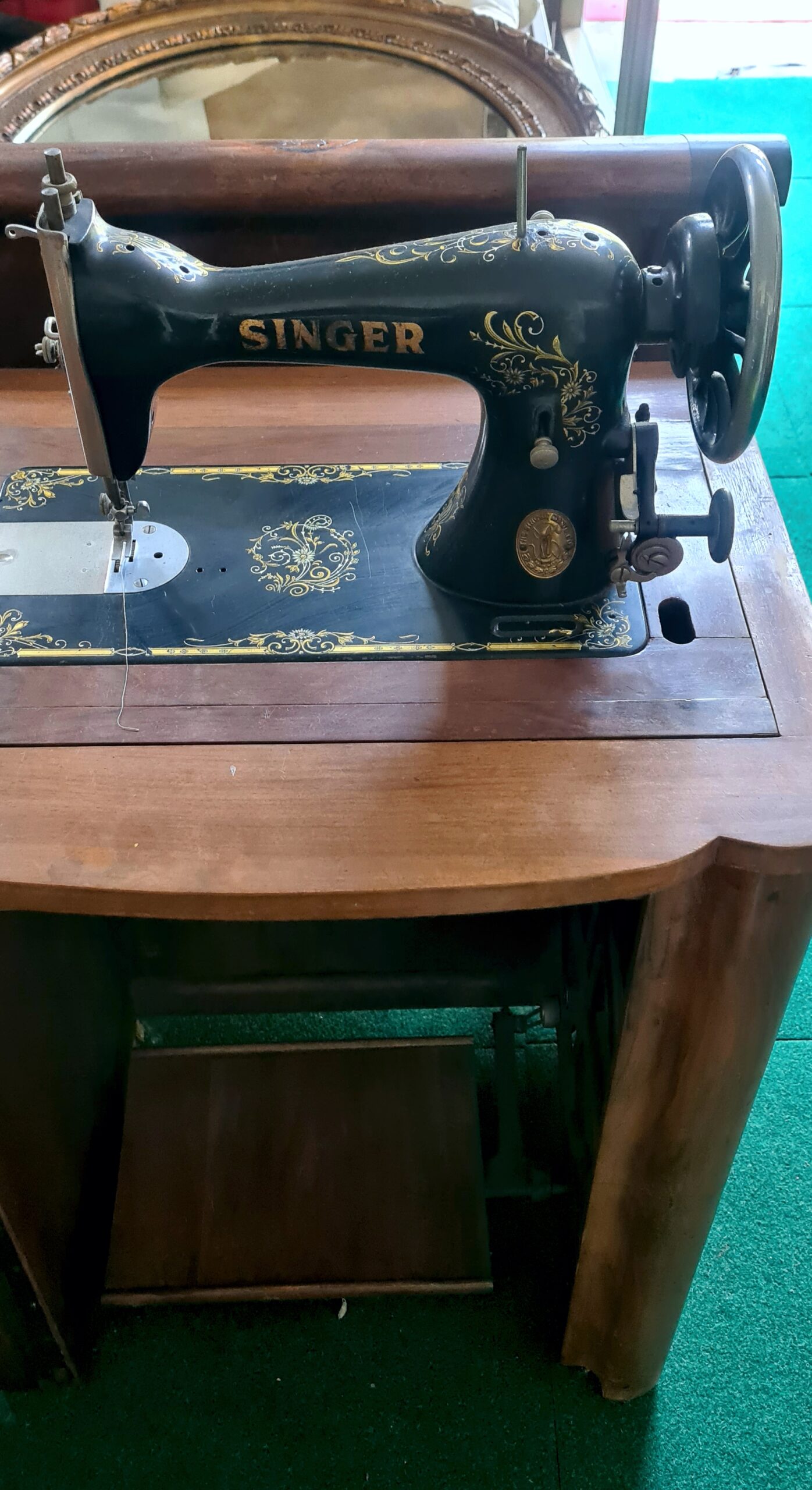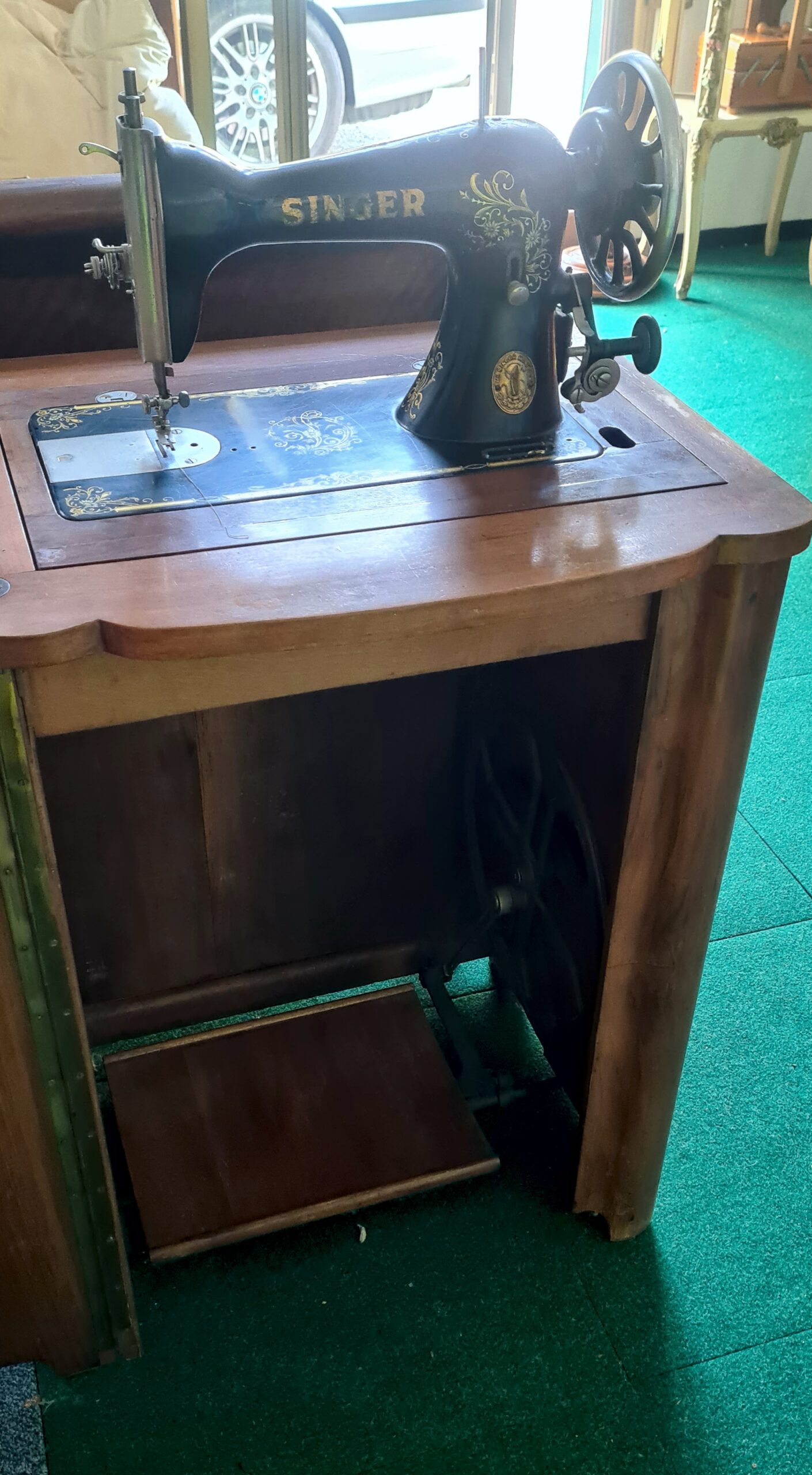 Macchina da cucire Singer, montata su mobiletto vintage. Ottime condizioni.