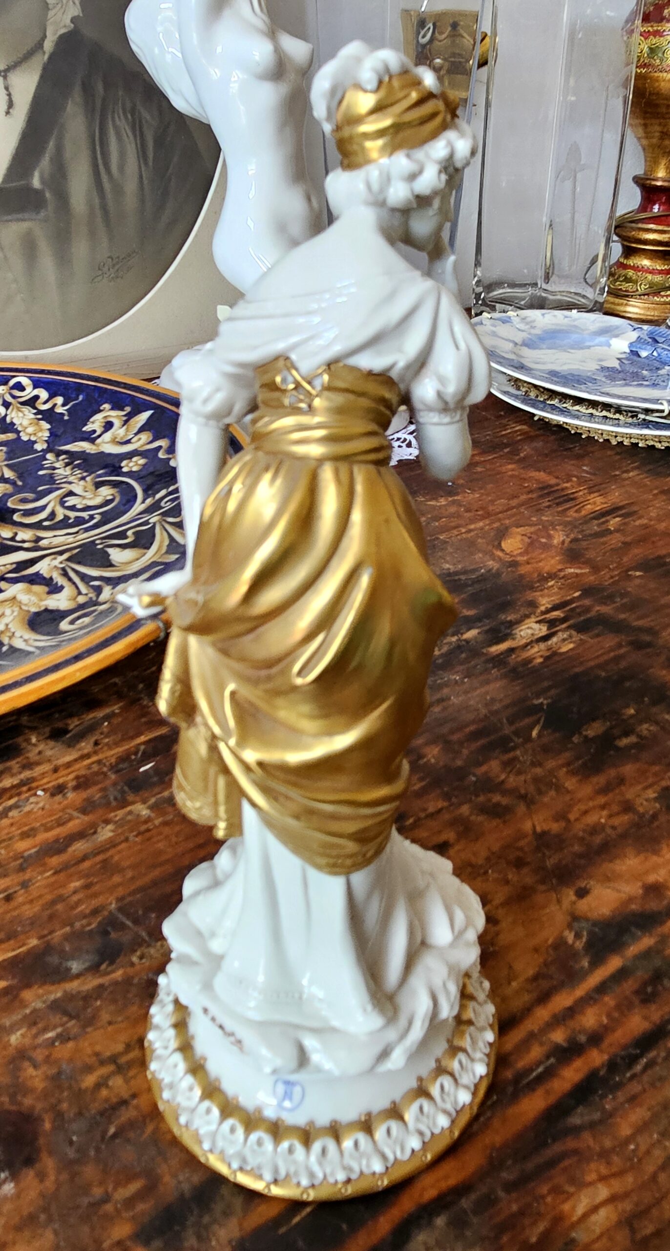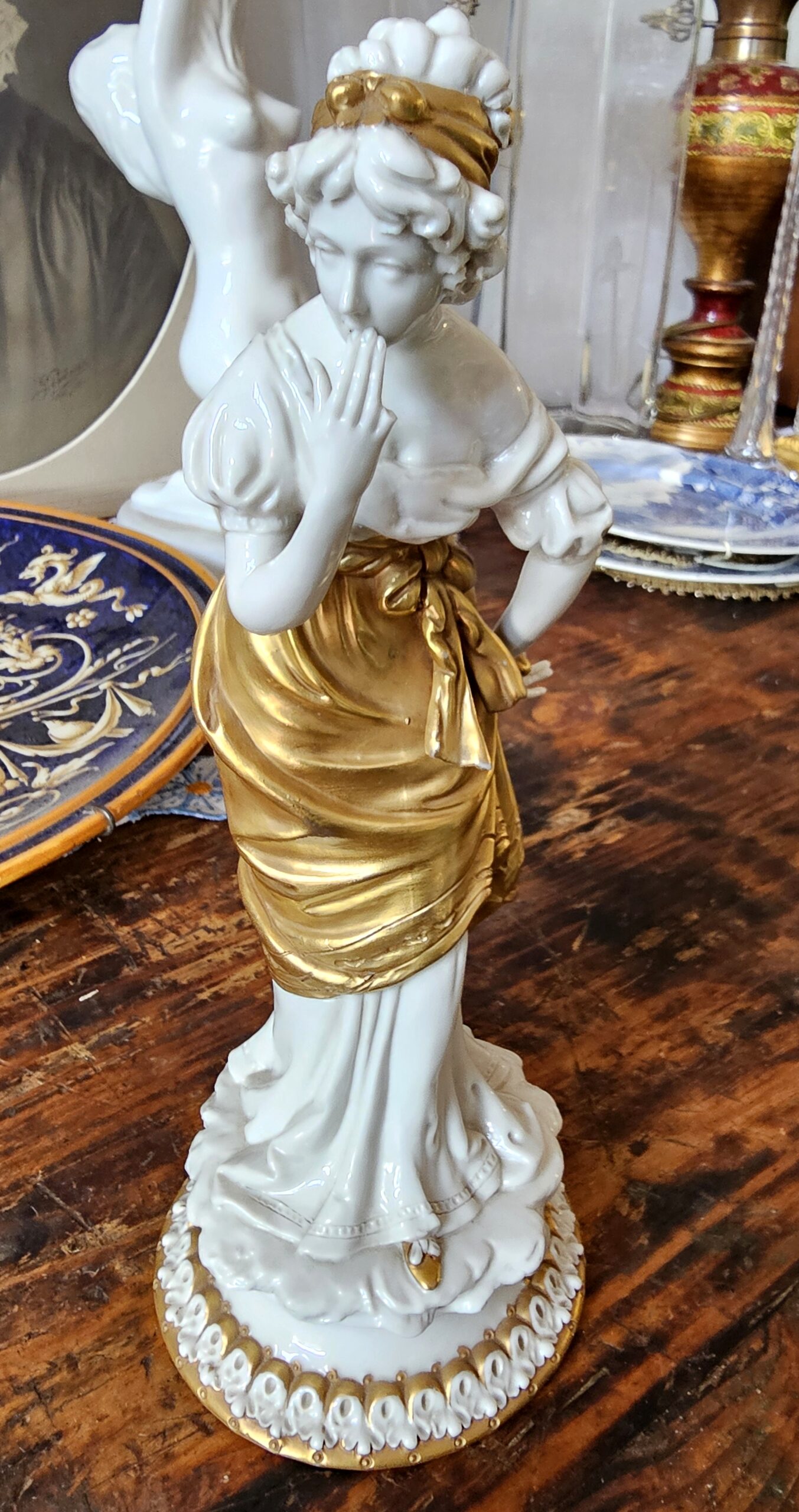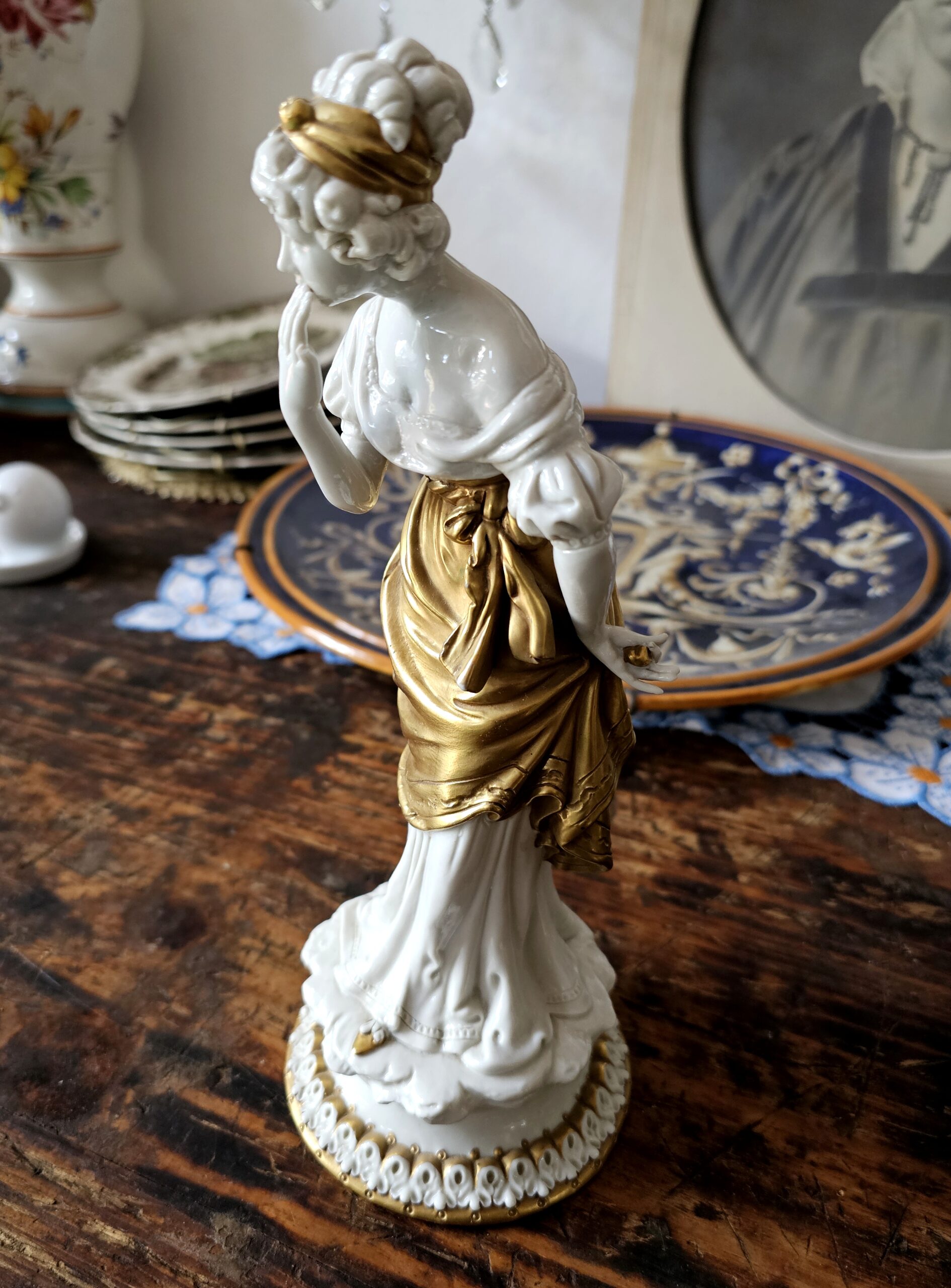 Statuetta di una Dama in ceramica con vestito dorato – Capodimonte